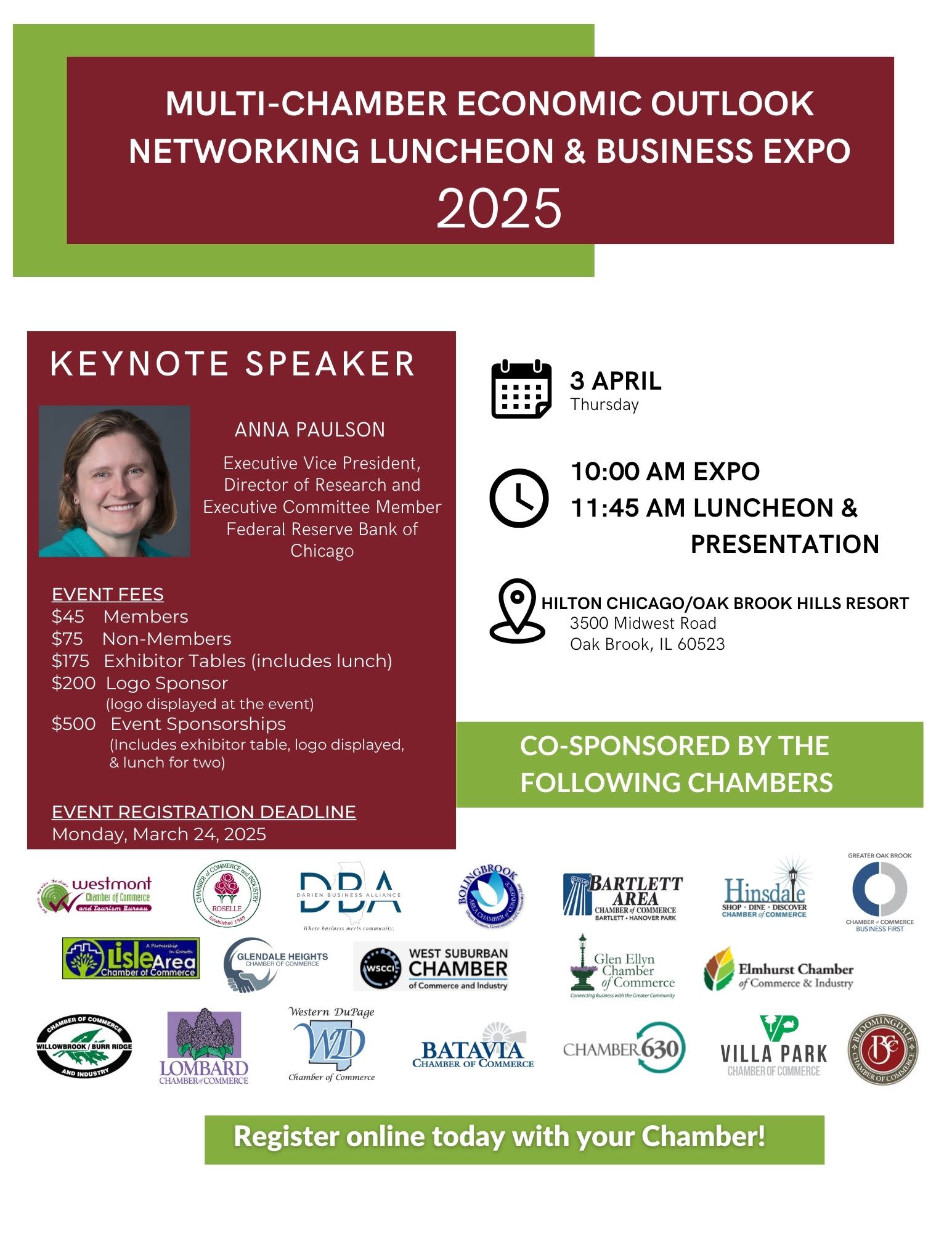 Join us at our annual Multi Chamber Economic Outlook and Business Expo Luncheon. Must purchase tickets by Friday, March 21, 2025. Expo Table sales are limited and will close Tuesday, March 18th. This is a wonderful opportunity to network with all our local chambers. If you are interested in being a logo or event sponsor please contact the office to set it up for you.